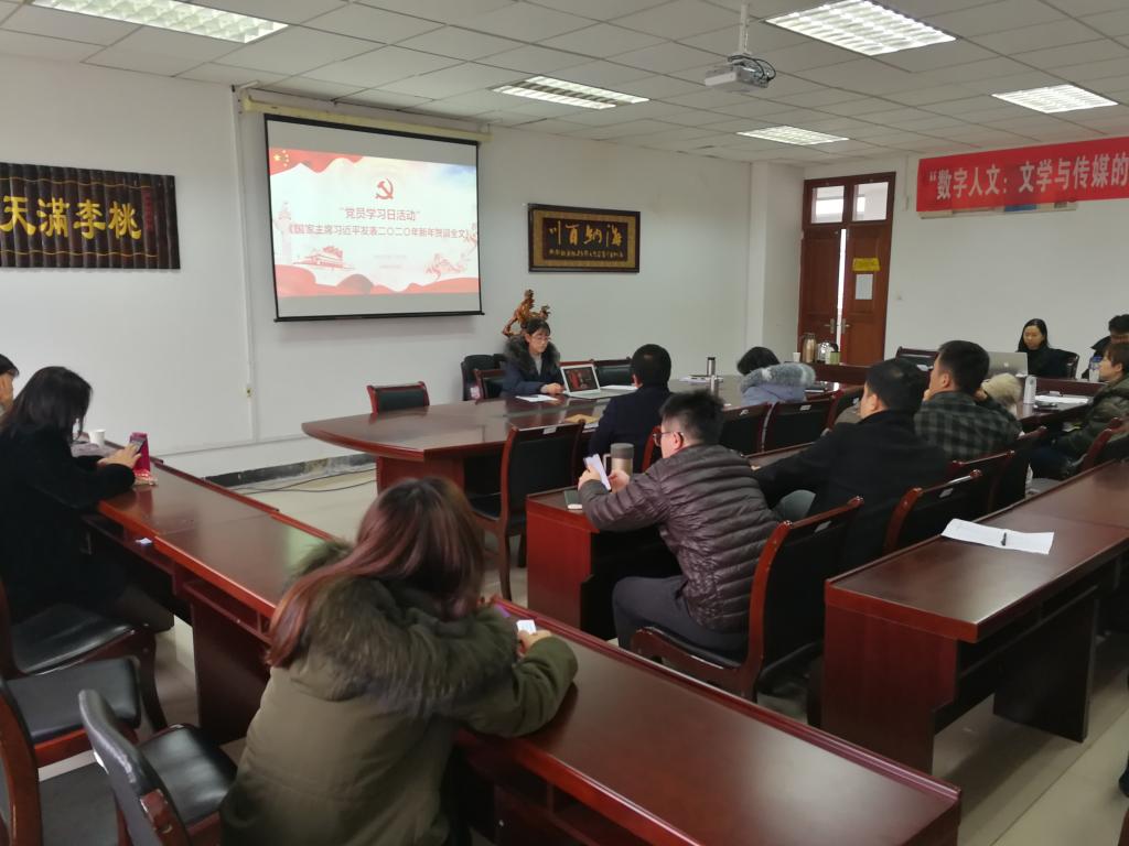 1月8日下午,新闻学院教工党支部在德正楼507会议室开展党员学习日活动,组织教工党员共同学习国家主席习近平二〇二〇年新年贺词。