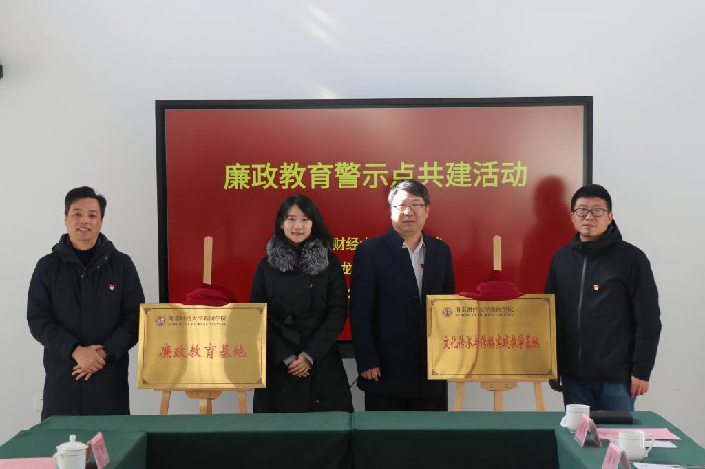 陈丹书记与陶可妍书记共同签订了廉政教育基地共建协议。刘霞云副院长与黄学涵书记共同签订了文化传承与传播实践教学基地协议。陈丹书记、李博伟副书记分别与查建刚书记、谢琨书记为廉政教育基地、文化传承与传播实践教学基地揭牌。