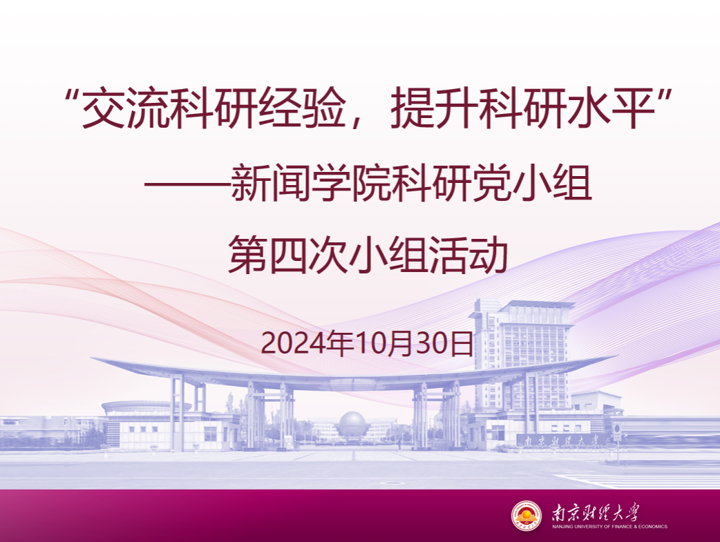 10月30日下午,新闻学院科研党小组在德正楼503会议室以“交流科研经验,提升科研水平”为主题开展了第四次党小组活动。会议由科研党小组组长张勇丽主持,全体科研党小组成员参加会议。
