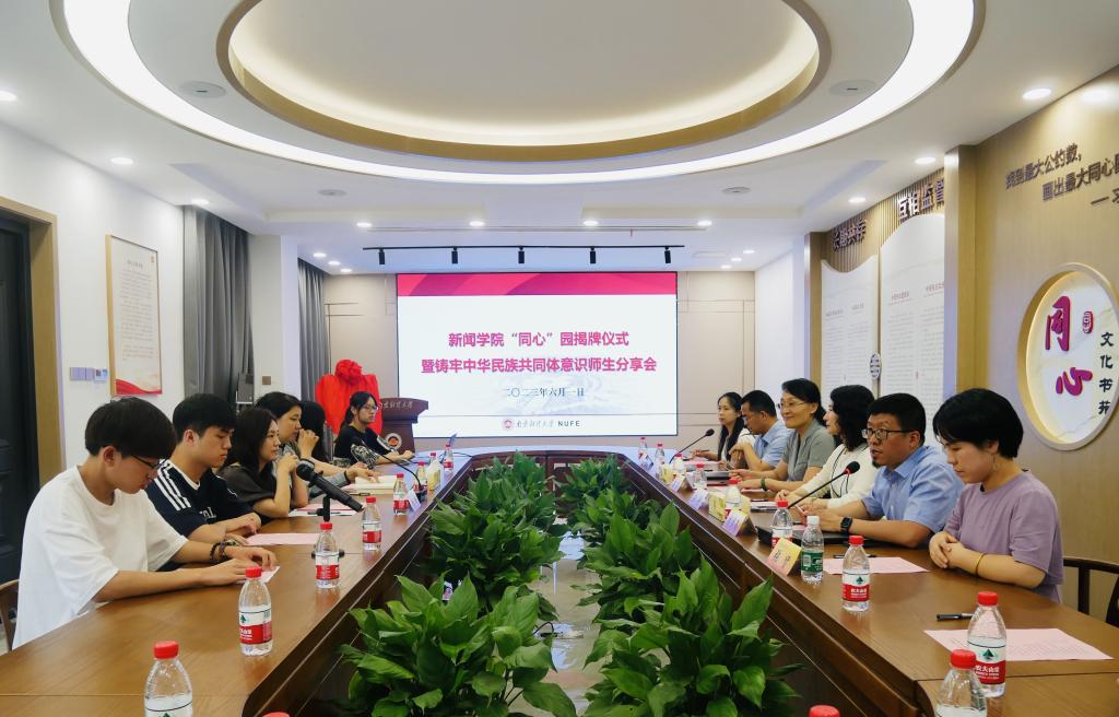 分享会前,校党委常委、党委统战部部长吕戎和新闻学院党总支书记陈丹共同为新闻学院统战园地“同心园”揭牌。