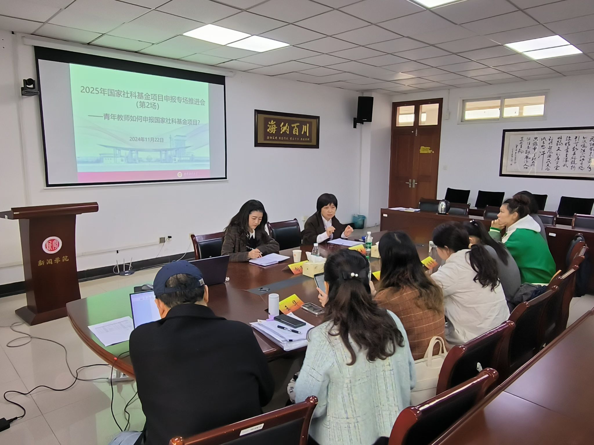 2024年11月22日下午,新闻学院在德正楼507会议室举办2025年国家社科基金项目申报第二次专场推进会,主题为“青年教师如何申报国家社科基金项目?”推进会由中国新闻史学会常务理事、中国新闻史学会地方新闻史专业委员会副理事长、天津师范大学新闻传播学院博士生导师李秀云教授主讲。新闻学院青年教师参加了本次会议,推进会由向莲君博士主持。