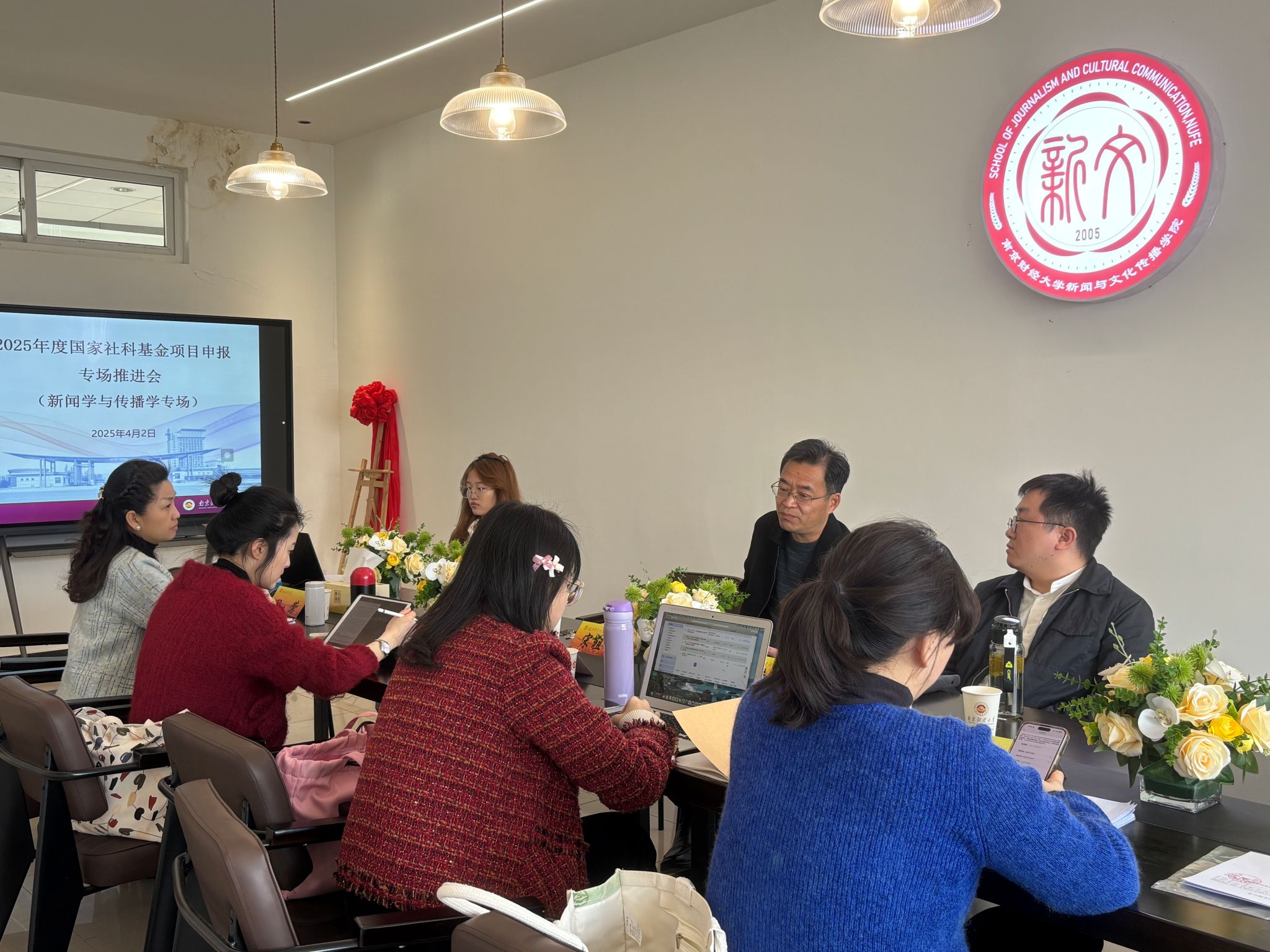 2025年4月2日下午,新闻与文化传播学院在德正楼503会议室举办了主题为2025年度国家社科项目基金申报新闻学与传播学专场推进会。本次推进会聚焦国家社科基金项目申报要点,旨在为学院青年教师提供专业指导,助力提升申报质量。推进会由新闻与文化传播学院宋祖华教授主讲,新闻系主任曹志伟老师主持。