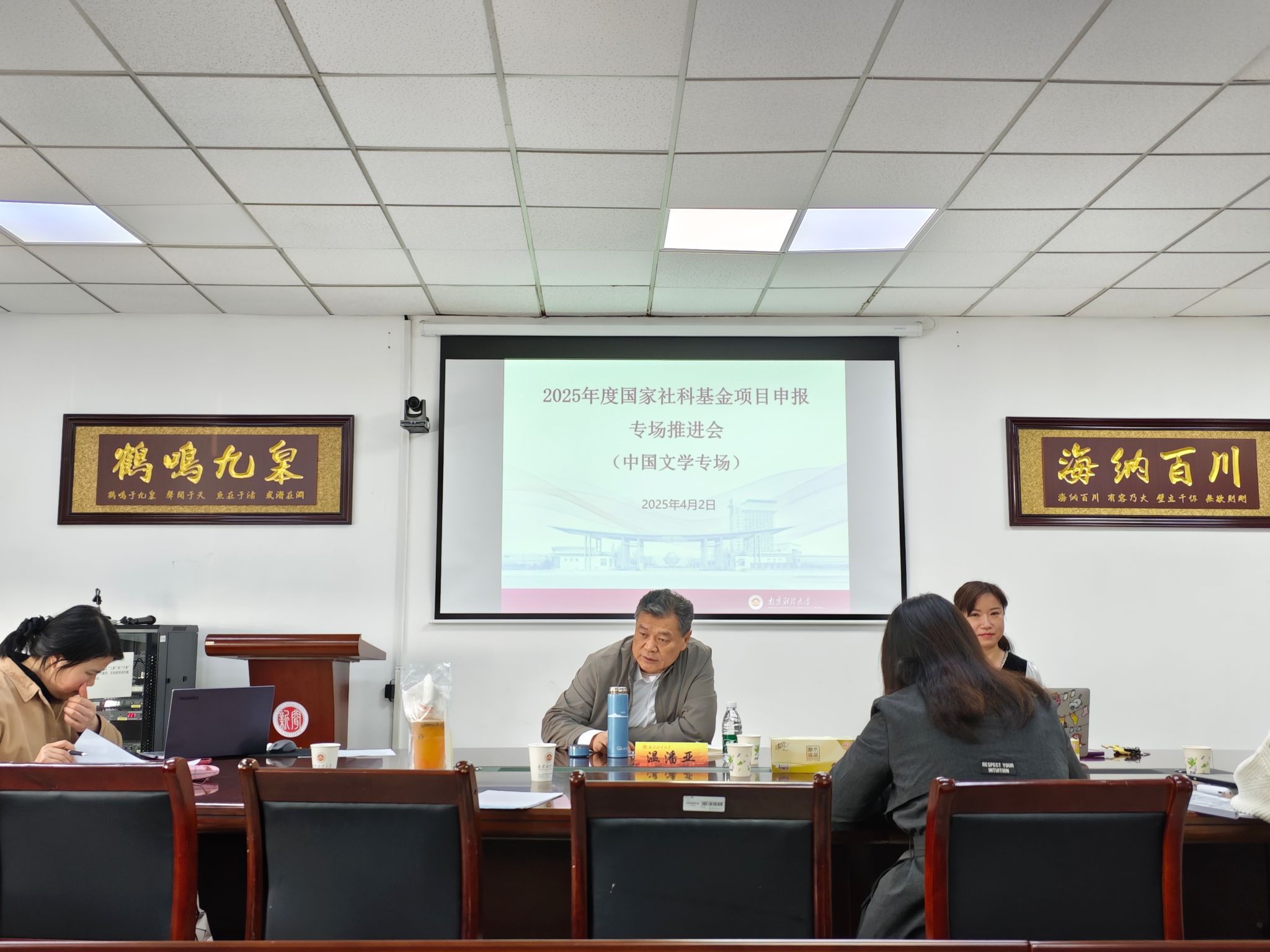 2025年4月2日下午,新闻与文化传播学院在德正楼507会议室举行了2025年度国家社科基金项目申报中国文学专场推进会。学院特邀南京财经大学原党委副书记(正校级)、博士生导师温潘亚教授主讲。推进会由新闻与文化传播学院中文系主任王华副教授主持,中文系申报教师参与交流。
