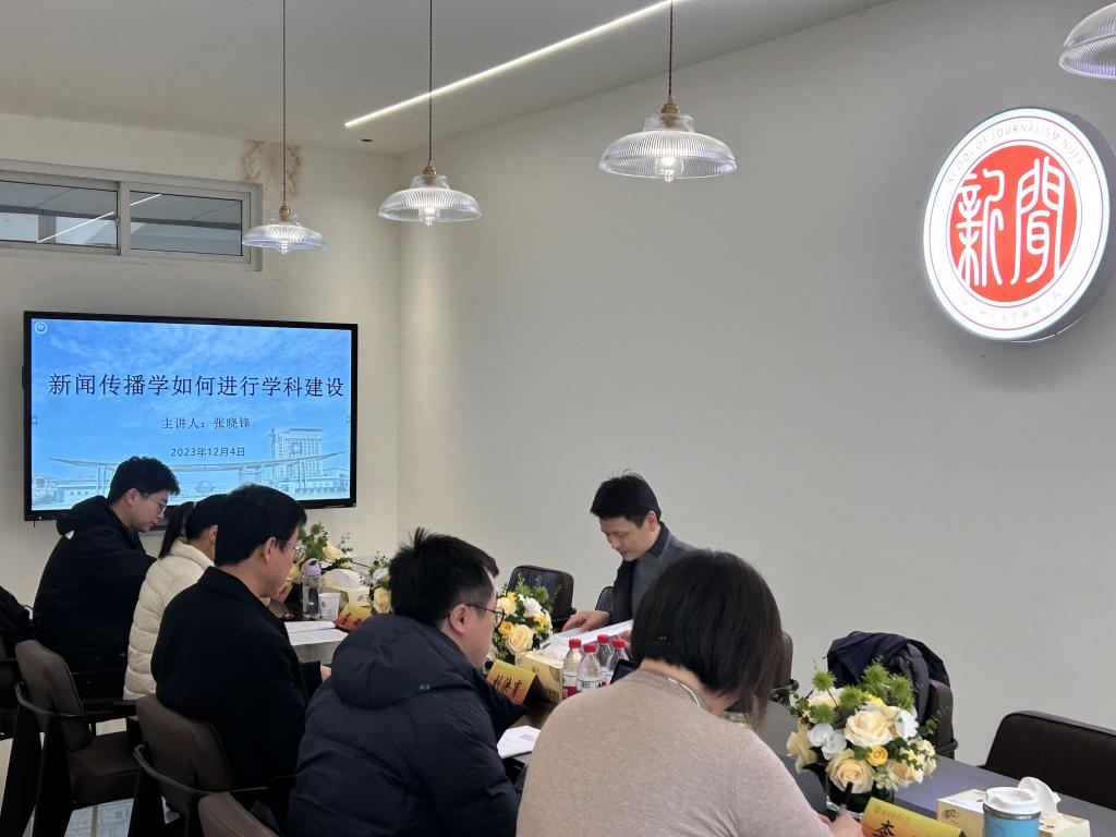 12月4日下午,南京财经大学新闻学院在德正楼503会议室举办“新闻传播学如何进行学科建设”主题讲座。南京师范大学学科建设处处长张晓锋教授受邀,就新闻传播学学科建设问题展开深入交流。本场讲座由我院副院长(主持工作)刘泱育老师主持,副院长肖璐老师、新闻系主任曹志伟老师、网媒系主任夏羿老师和研究生秘书李晞老师参加了本次讲座。