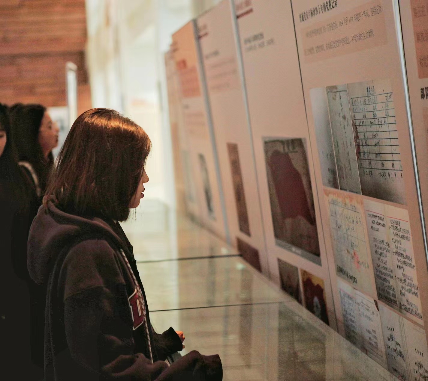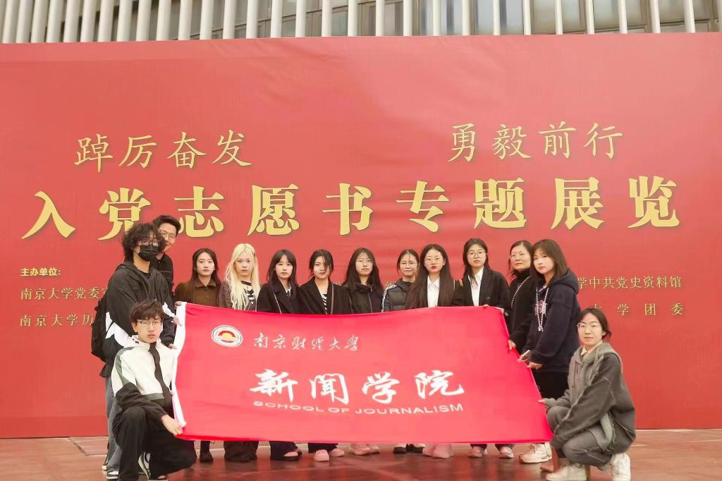 4月3日,清明之际,雨疏风骤。新闻学院部分师生由学院团委书记毛颖老师带领,来到南京大学仙林校区杜厦图书馆参观“入党志愿书专题展览”。