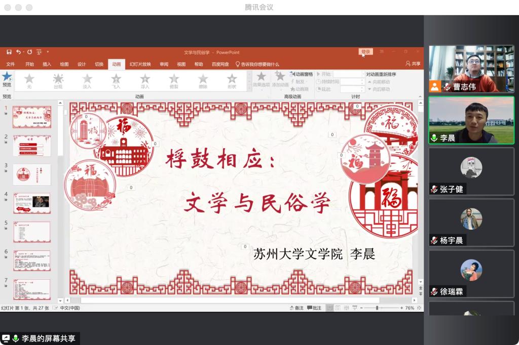 11月28日下午15:30,苏州大学文学院副教授李晨为新闻学院作了题为《桴鼓相应:文学与民俗学》的线上讲座,新闻学院本科生在线参加,此次讲座由新闻学院院长助理、新闻系主任曹志伟主持。