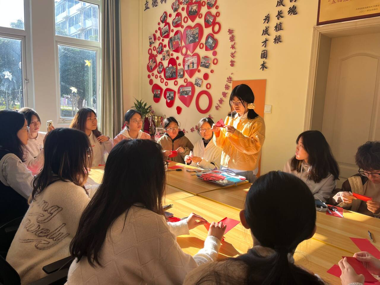 11月7日下午,新闻学院在仙林校区十三号站社区党建工作室举办了以“心灵剪纸,剪出风采”为主题的一站式学生活动,院学工办主任、2024级辅导员杨柳主持,新闻学院党委副书记李博伟和新闻学院2024级部分本科生参加。