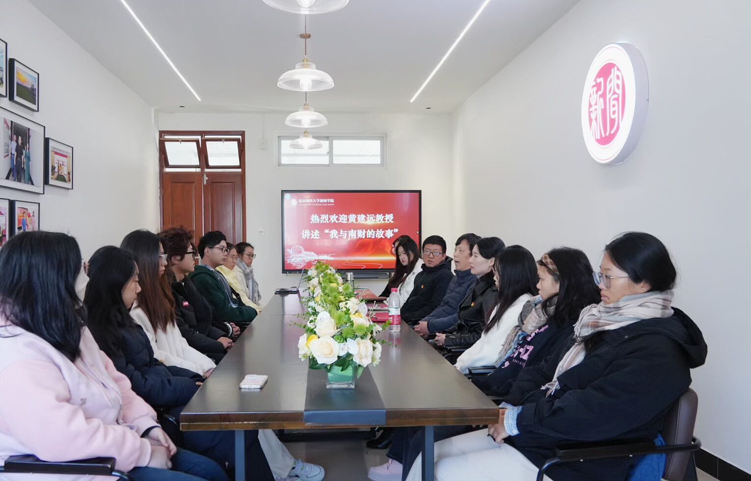 11月27日下午,新闻学院在德正楼503关工委“谈心屋”举办了“我与南财的故事”主题活动。学院邀请了退休教师黄建远教授与学生分享交流,新闻学院党委书记、关工委主任陈丹,副书记、关工委副主任李博伟与学生共同参加了活动,活动由李博伟副书记主持。
