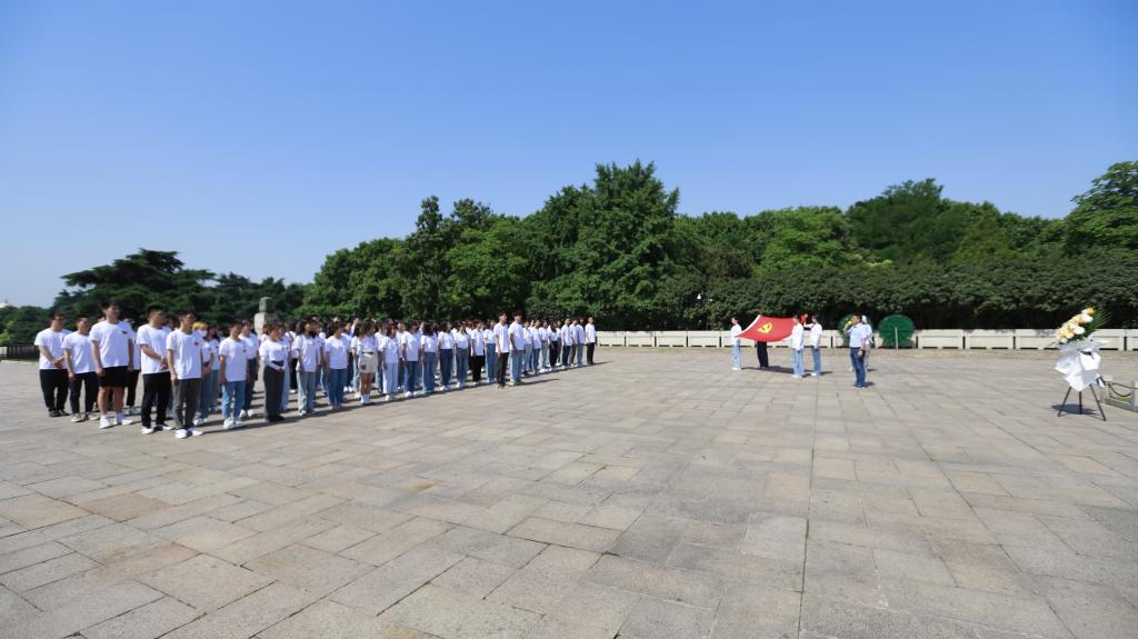 首先,伴随着舒缓的献花曲,两名新生党员向烈士纪念碑敬献了花篮,全体党员向革命烈士默哀。接着,由江苏省2019年度优秀共产党员、经济学院副院长韩中领誓,全体师生党员举起右拳,在革命先烈的见证下庄严宣誓“我志愿加入中国共产党,拥护党的纲领……”。铿锵的誓言传承着红色信仰的力量与强国一代有我在的青春梦想。