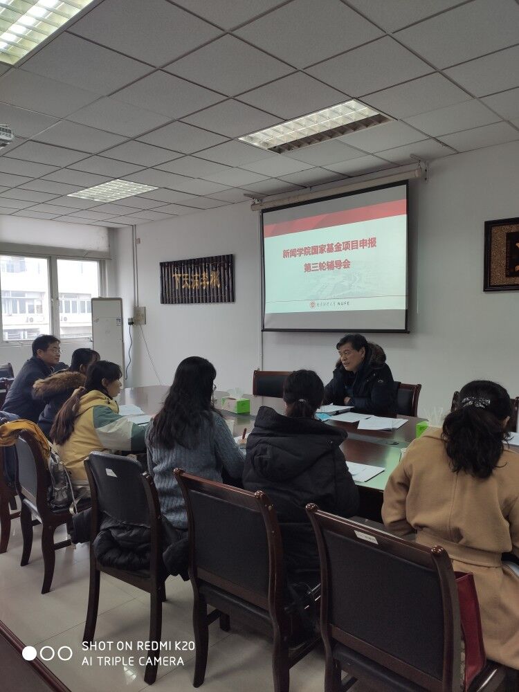 为推动国家社科基金项目申报工作,提高申报质量,新闻学院于2021年1月23日上午,在德政楼507会议室举行了第三轮国家社科基金项目申报辅导会。会议邀请了我校党委副书记温潘亚教授、南京大学新闻传播学院副院长胡翼青教授和南京师范大学骆正林教授作现场辅导。会议由我院院长宋祖华教授主持,课题申报负责人、课题组成员以及部分骨干教师参加了会议。