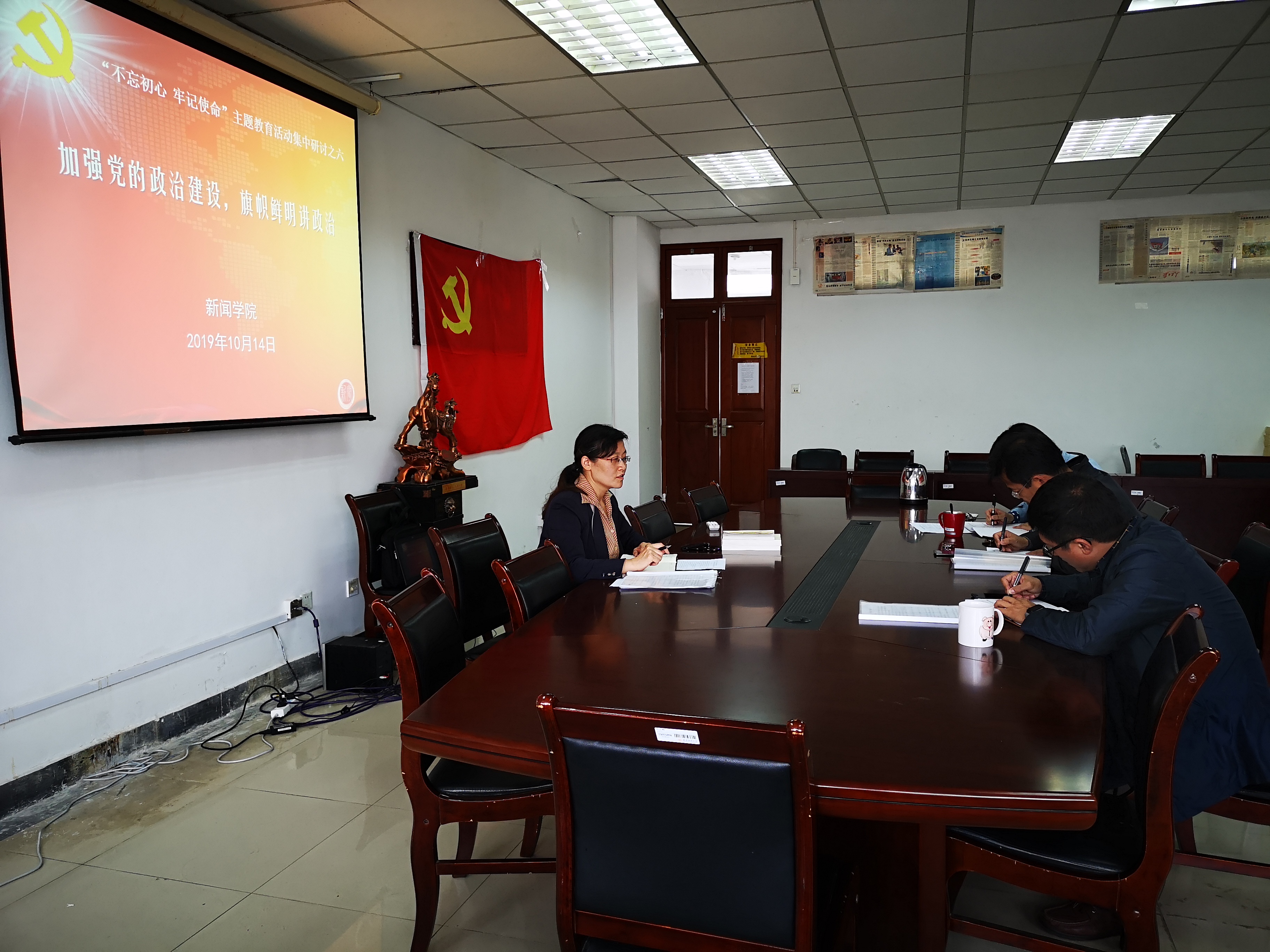 10月14日下午,新闻学院领导班子开展了“加强党的政治建设,旗帜鲜明讲政治”专题集中学习研讨会。会议由院党总支书记周亚芳主持。