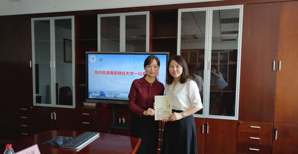 刘霞云副院长代表学院向浙江工商大学人文与传播学院赠送我院教师主编的《大学语文》教材。浙江工商大学人文与传播学院领导班子表示希望两个学院今后在专业建设、人才培养、课程建设等方面能够互通有无、彼此协助,继续保持深入而密切的交流与合作。