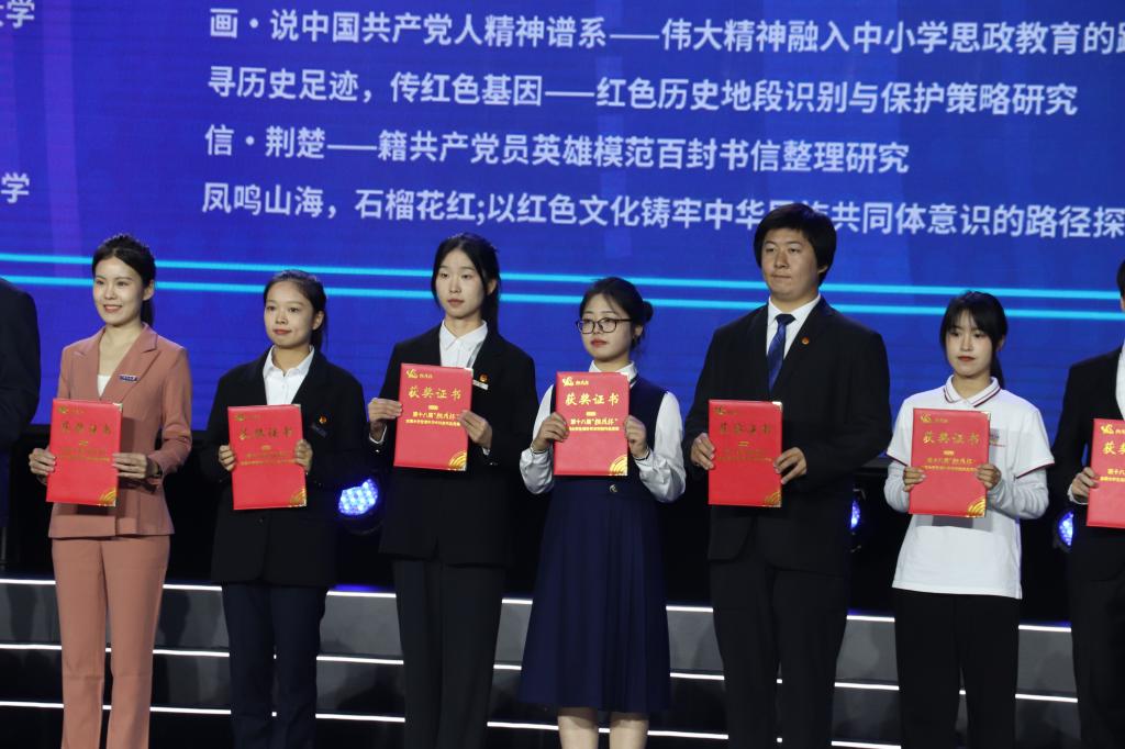 我院红色专项活动特等奖获奖作品代表王兰兰(左四)上台领奖