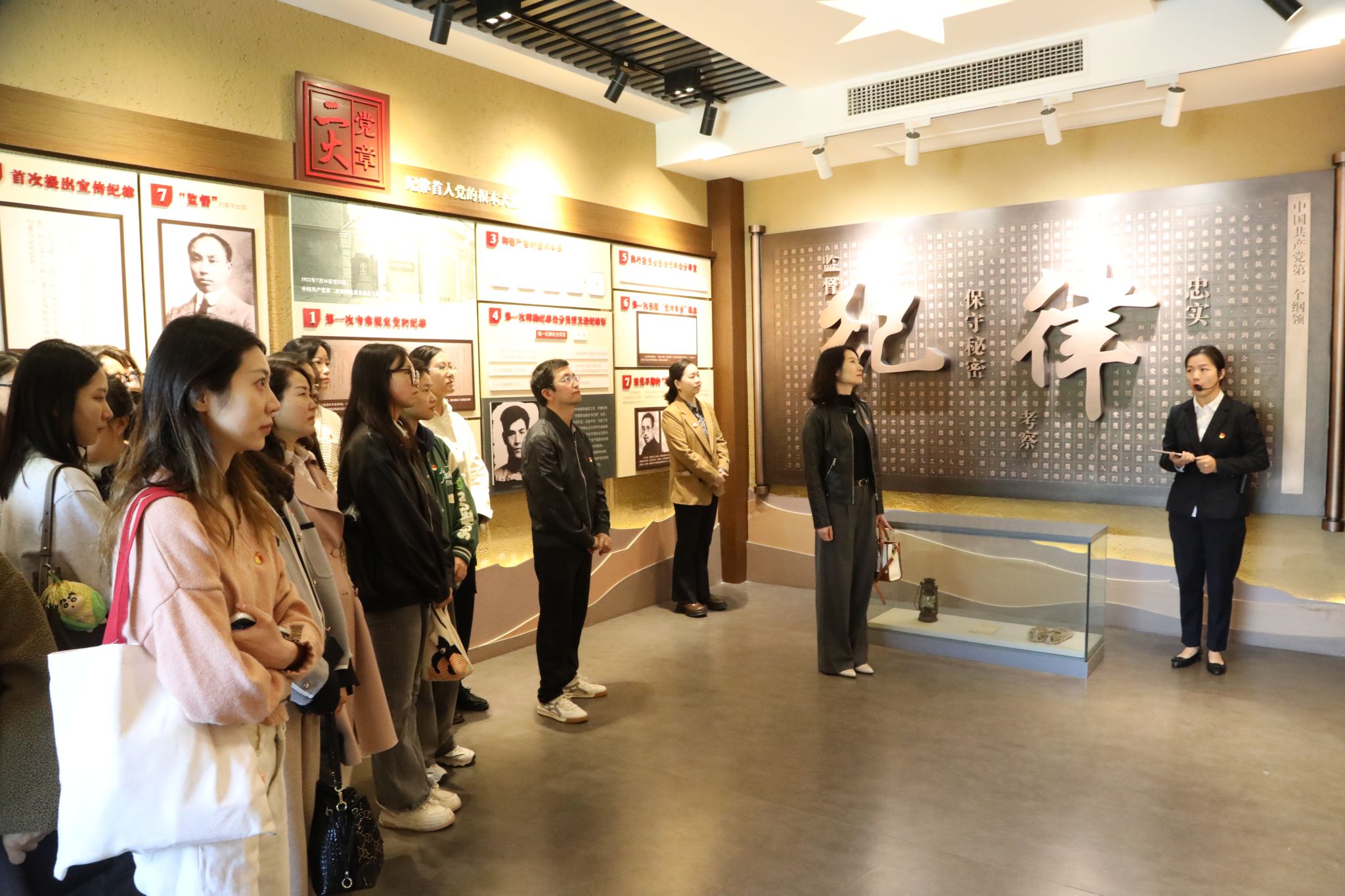 在教育馆内,党员们认真聆听讲解员的详细介绍,系统参观学习了馆内“奠基淬炼”“曲折发展”“迈向成熟”“伟大创举”四个主题展,从纪律的起源、内涵、机构、处分、依据、典型案例等方面重温中国共产党的纪律建设之路,聆听历史回响,感悟纪律力量。