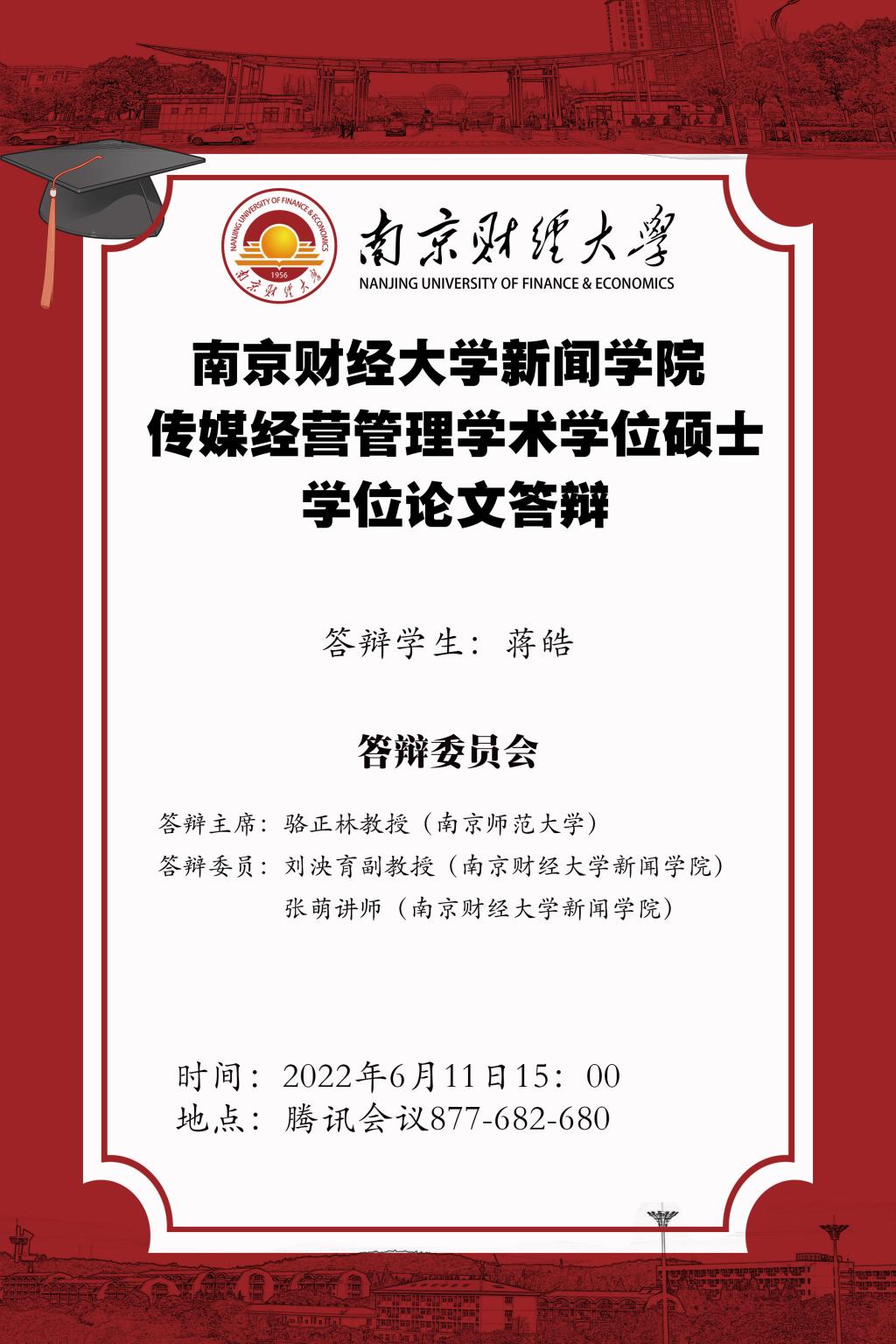 2022年新闻学院研究生论文答辩即将开始,本次答辩采用学院分组、线上答辩的方式进行。请各位答辩学生做好准备。欢迎非毕业班研究生来旁听学习。具体时间安排见下图。