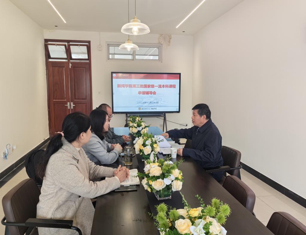 12月26日下午,新闻学院第三批国家级一流本科课程申报辅导会在德正楼503室举行。辅导会由国家级第一批线上一流课程和第二批线上线下混合式一流课程负责人、南京财经大学经济学院资深教授王庚主讲。新闻学院申报第三批国家级一流本科课程《大学语文》团队核心成员参会。会议由新闻学院副院长兼《大学语文》课程负责人主持。