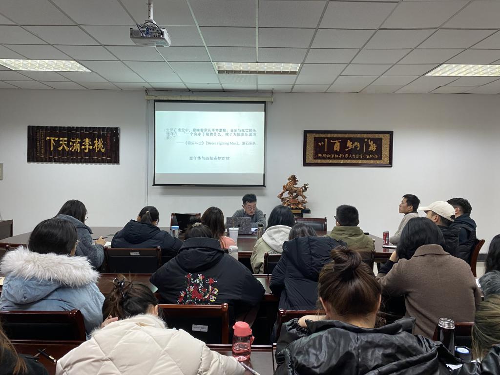 2020年12月2日晚七点,第十期“研情偶寄”读书会在新闻学院德正楼507会议室如期举行。本次读书会领读人是新闻学院新闻系的曹志伟老师,他带来的读书会主题为《民谣•镜子•流浪者:纪念北京大学歌谣研究会成立100周年——兼评< 民谣啊民谣>与< 噪音:音乐的政治经济学>》,2019、2020级研究生与部分本科生参加了此次读书会,此外夏羿、段永杰、张萌等青年骨干教师也冒雨前来聆听。