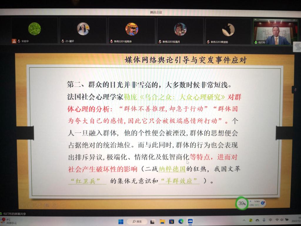 南京市委网信办副主任刘斌应邀为新闻学院做线上学术讲座